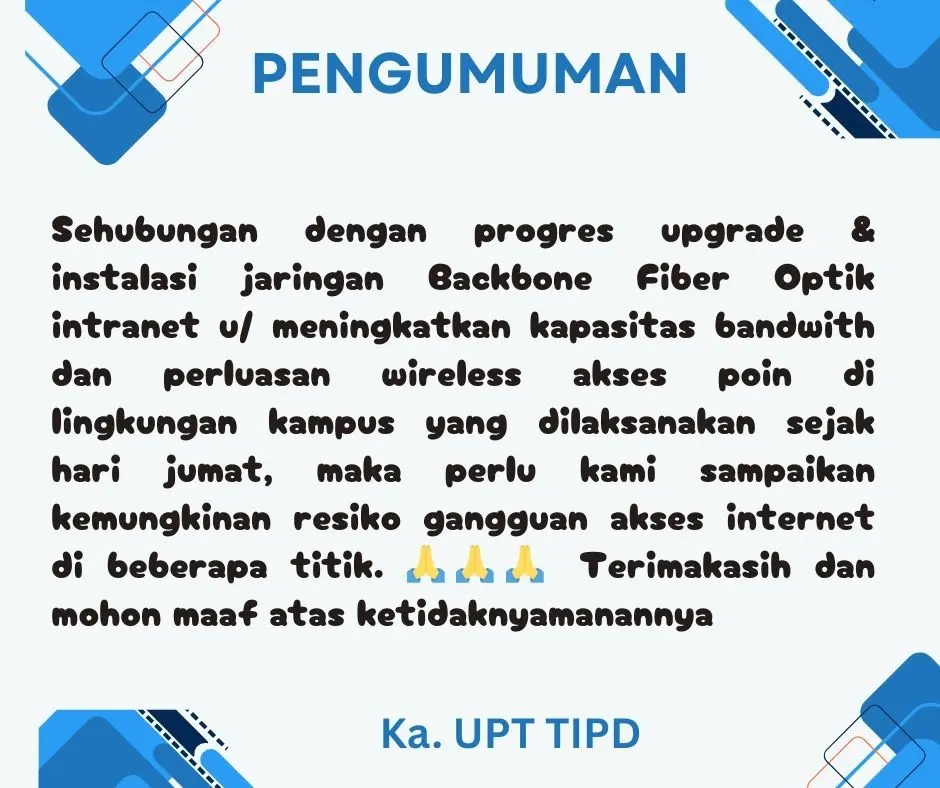 Info Gangguan Jaringan Internet dan Intranet dalam Kampus